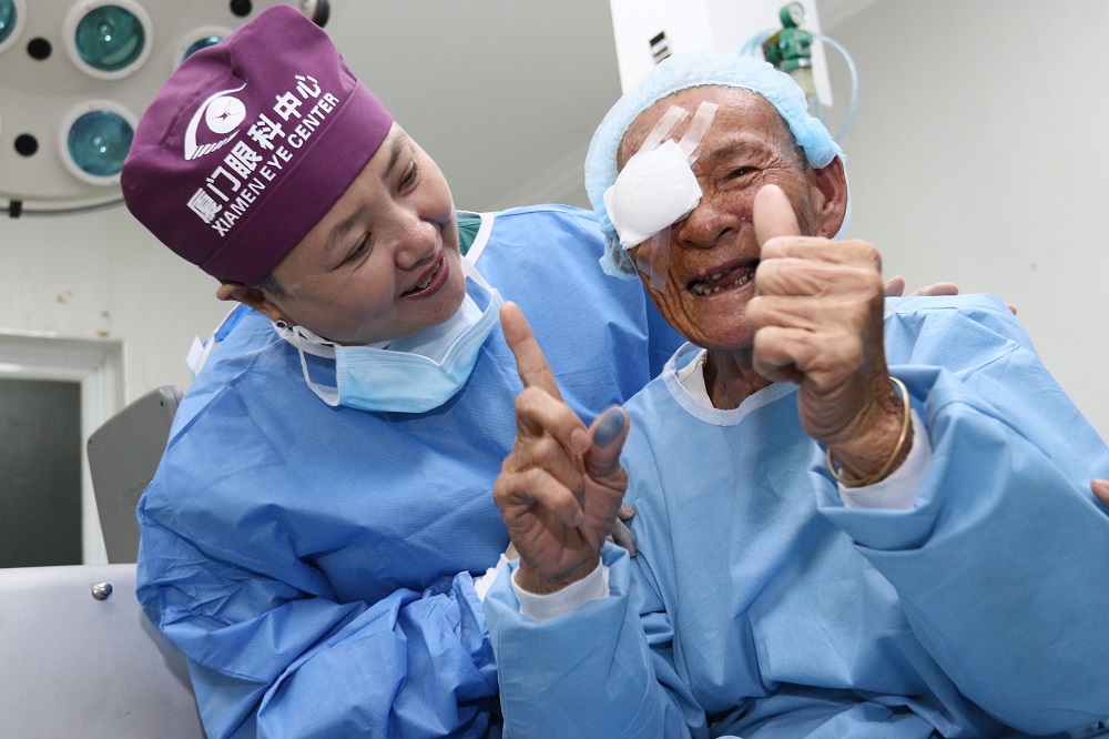廈門眼科人還將光明帶到寧夏、西藏等地,免費(fèi)為當(dāng)?shù)刎毨а奂不颊邔?shí)施手術(shù)。緬甸、柬埔寨、斯里蘭卡、尼泊爾等國(guó)也有廈門眼科人的身影。2016年,廈門眼科中心第8次走出國(guó)門,派出博士專家團(tuán)隊(duì)參與“湄公河五國(guó)光明行”公益行動(dòng),為柬埔寨201名貧困患者免費(fèi)實(shí)施疑難白內(nèi)障手術(shù),用光明照亮中柬友誼。
