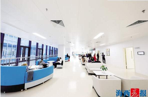 現(xiàn)代化的裝修、暖綠暖黃為主色調(diào)的環(huán)境讓人眼前一亮??剖议T(mén)診和住院樓層各種指引標(biāo)識(shí)清晰明確,隨處可見(jiàn)溫馨提示,還有志愿導(dǎo)引人員。階梯形前臺(tái),讓坐在輪椅上也能與醫(yī)務(wù)人員無(wú)障礙溝通。等候就診時(shí),你可以在按摩椅上來(lái)一場(chǎng)放松之旅,也可以漫步VIP候診區(qū)長(zhǎng)廊欣賞名畫(huà)。在休息區(qū),休閑吧和兒童游樂(lè)區(qū)等可以緩解診療時(shí)帶來(lái)的陌生感和緊張感。同時(shí),五緣院區(qū)還配有超千個(gè)地面、地下停車(chē)位,方便“有車(chē)一族”到院泊車(chē)。