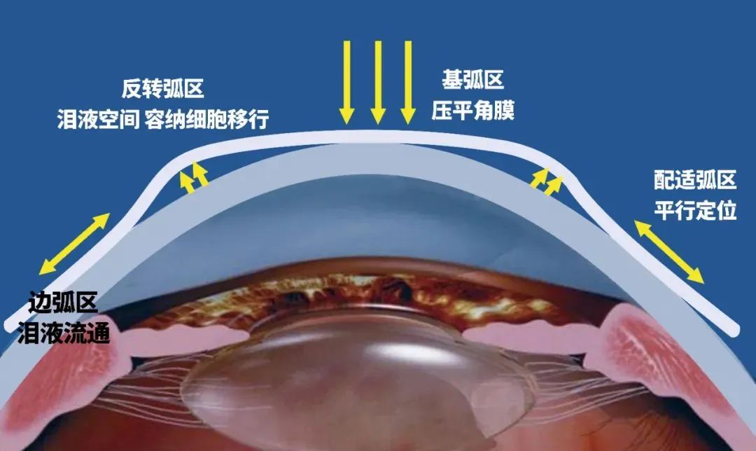 2、OK鏡采用了反幾何設計,根據(jù)角膜形態(tài)做定制。