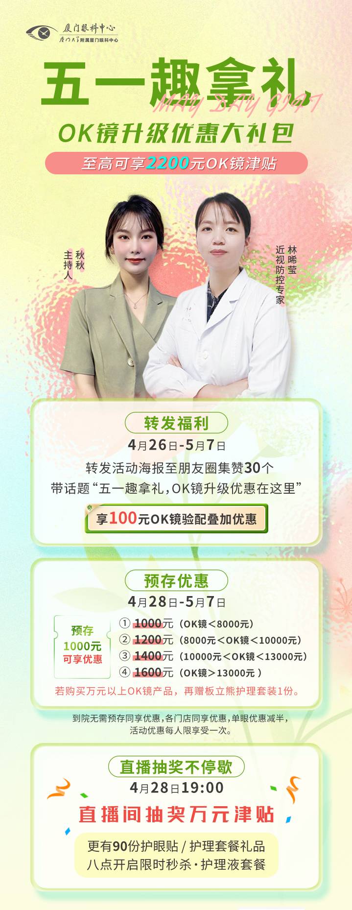 五一趣拿禮!廈門眼科中心OK鏡優(yōu)惠至高2200元
