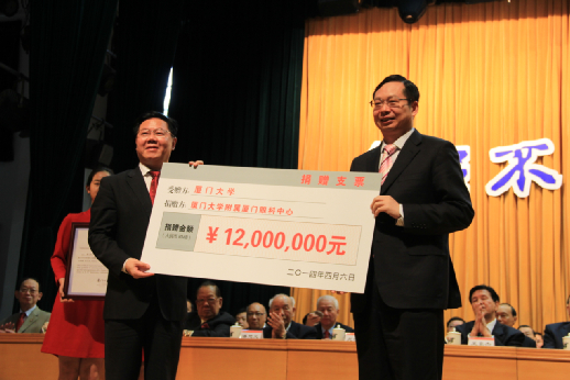 4月6日,在廈門大學(xué)建南大禮堂舉行的廈大93周年校慶典禮上,廈門眼科中心集團(tuán)董事長蘇慶燦捐資1200萬為廈大“慶生”,而這筆款項(xiàng)將主要用于廈門大學(xué)翔安校區(qū)體育館的建設(shè)。