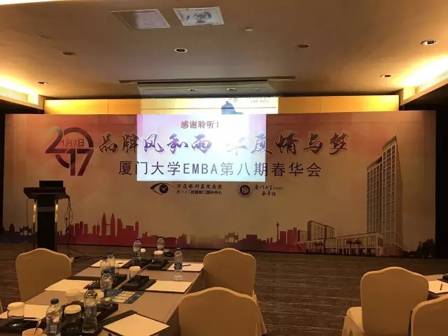 2017年1月7日,廈門大學(xué)EMBA第八期春華會(huì)在廈門瑞頤大酒店舉行,邀請(qǐng)華廈眼科醫(yī)院集團(tuán)董事長(zhǎng)蘇慶燦作了主題為《品牌風(fēng)和雨,華廈情與夢(mèng)》的創(chuàng)業(yè)分享。