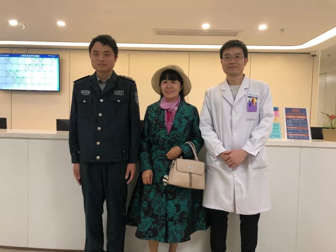 9日下午,故事里的主人公張瓊花女士特地從泉州趕回廈門,向廈門大學(xué)附屬廈門眼科中心保安部巡邏崗保安萬志豪、眼外傷??评詈2ú┦勘硎靖兄x。
