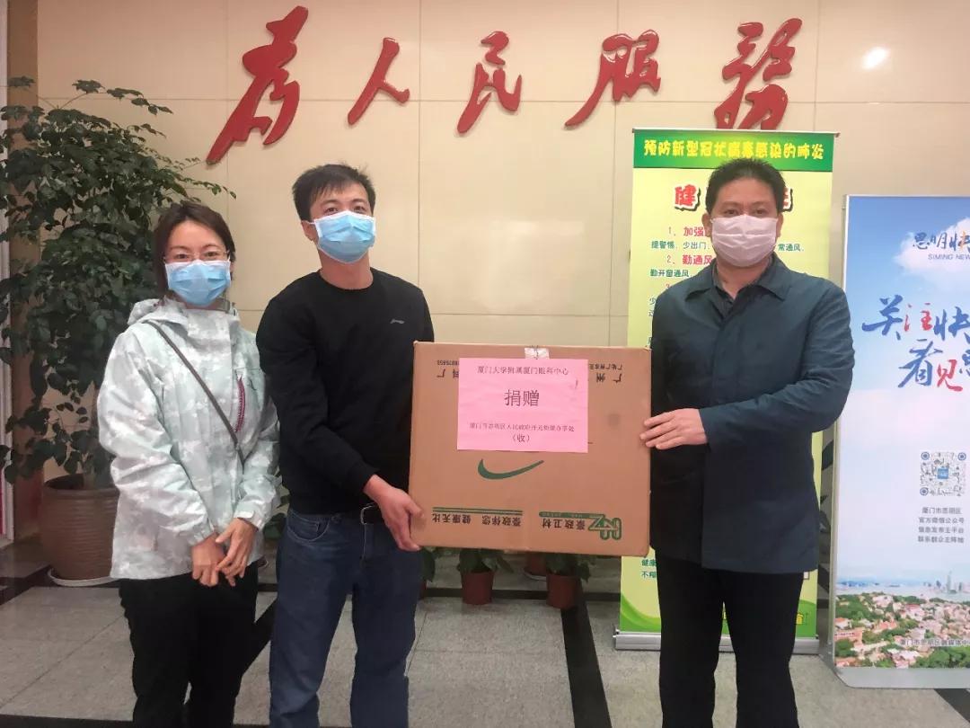 “主任您好,你們辛苦了。這是我們廈門大學(xué)附屬?gòu)B門眼科中心捐贈(zèng)的護(hù)目鏡,請(qǐng)您代表貴街道接收。相信我們會(huì)戰(zhàn)勝疫情,迎來美好的春天!”