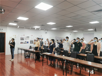 會議末,廈門眼科中心黨支部書記潘美華院長帶領(lǐng)全體黨員重溫入黨誓詞。