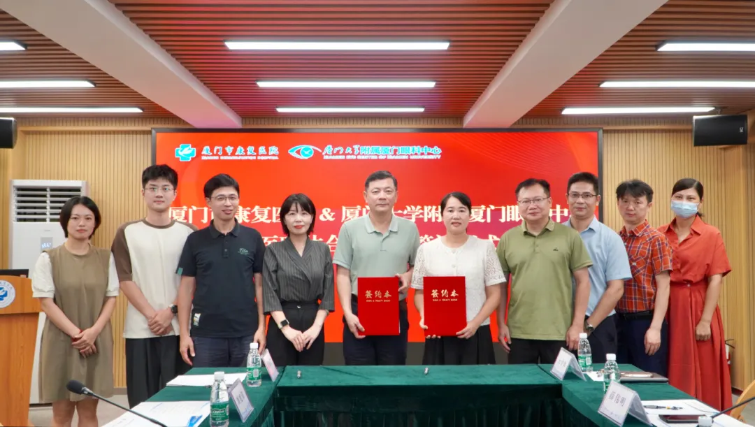 7月30日,廈門眼科中心與廈門市康 復(fù)醫(yī)院正式簽訂醫(yī)聯(lián)體合作協(xié)議。兩院建立醫(yī)聯(lián)體合作,旨在優(yōu)化區(qū)域醫(yī)療衛(wèi)生資源結(jié)構(gòu)布局,助力構(gòu)建“多病共防”模式,護(hù)航兒童青少年健康成長(zhǎng)。廈門眼科中心黨委書記、業(yè)務(wù)副院長(zhǎng)劉旭陽(yáng)教授,廈門眼科中心執(zhí)行總經(jīng)理姚鄭玲玲,廈門市康 復(fù)醫(yī)院黨支部書記李亞蘭,廈門市康 復(fù)醫(yī)院副院長(zhǎng)薛偉明等領(lǐng)導(dǎo)專家出席儀式。